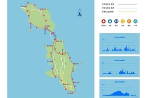 长岛海洋生态文明展览馆(起点)--文化街--通海路--海滨路--南北连岛大桥--九丈崖--月牙湾--嵩前村--北城--南北连岛大桥--王沟村--仙境源--慢行路--林海景区--海边慢行路--长岛海洋生态文明展览馆(终点)。